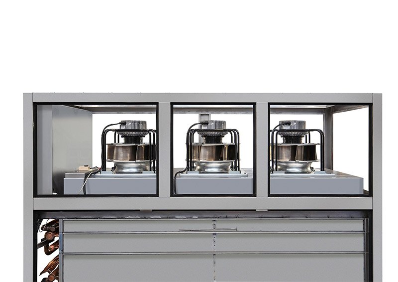 - Εξωτερικός συμπυκνωτής με ανεμιστήρες EC, αθόρυβους ανεμιστήρες, φυγοκεντρικούς ανεμιστήρες και αντιδιαβρωτική επεξεργασία για αλατούχα περιβάλλοντα.