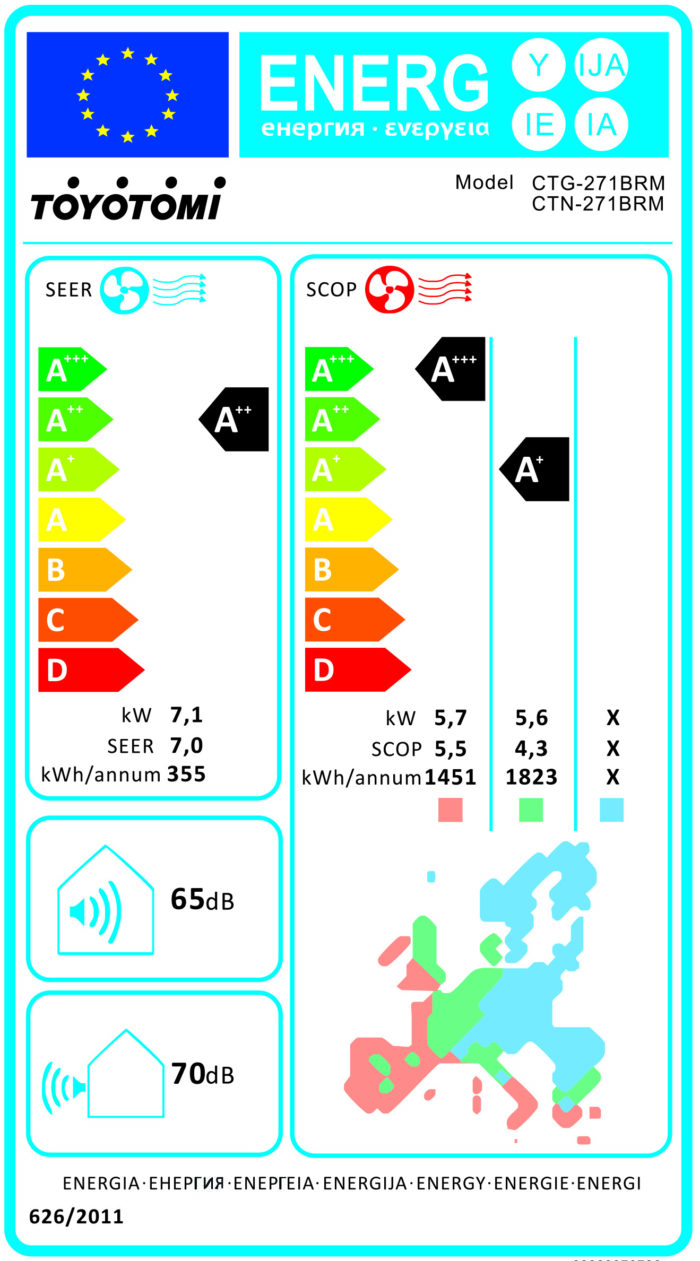 | Ενεργειακή Κλάση Θέρμανσης Θερμότερης Εποχής | A+++ | ||