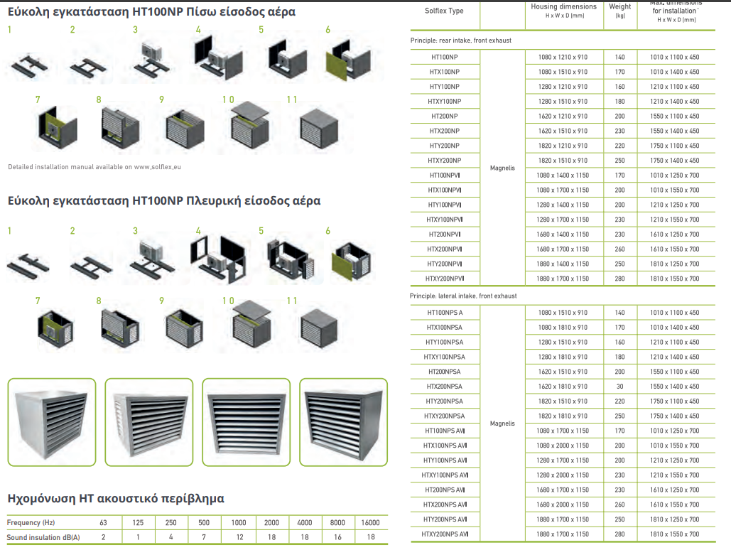 Ακουστική περίφραξη με μείωση θορύβου έως 12 dB(A), μετρούμενη σύμφωνα με το πρότυπο DIN EN ISO3744.