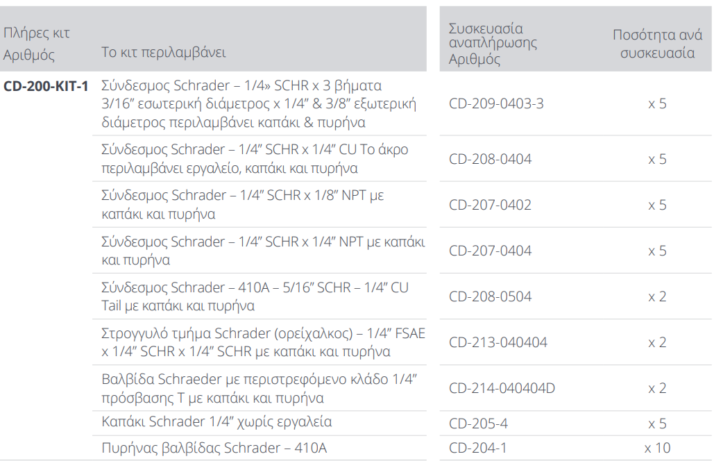 Aspen Schrader Σέτ εξαρτημάτων