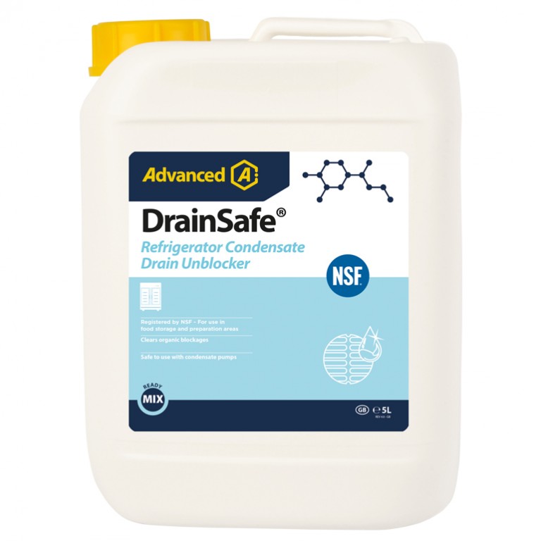 Ξεμπλοκάρισμα αποστράγγισης ψύξης. Το DrainSafe είναι ένα ισχυρό ξεμπλοκάρισμα αποστράγγισης για χρήση σε συστήματα ψύξης. Έχει σχεδιαστεί για να διαλύει γρήγορα τη λάσπη και τα βιοφίλμ. Αυτές οι συσσωρεύσεις απαντώνται συνήθως στις γραμμές συμπυκνωμάτων που αποστραγγίζονται μακριά από τα ψυγεία και τα γραφεία γαλακτοκομικών προϊόντων και μπορούν να προκαλέσουν μπλοκάρισμα και εξάπλωση βακτηρίων. Με τύπο βιομηχανικής αντοχής, το DrainSafe είναι αποδεκτό για χρήση σε αποχετεύσεις εντός και γύρω από περιοχές επεξεργασίας τροφίμων.